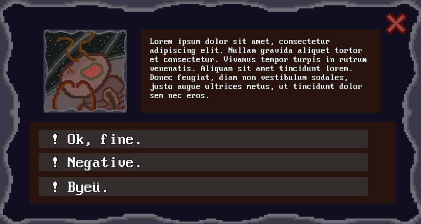 I prepared some portraits for the NPCs and prepared prototypes of dialogue options but they still need some work.